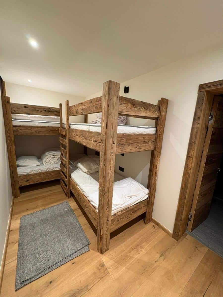 Le souplex, pensé comme un véritable espace nuit, propose un salon TV intimiste, deux somptueuses suites parentales avec salles de bains et WC, ainsi qu’une chambre dédiée aux enfants ou invités, équipée de quatre lits simples superposés et disposant de sa propre salle de bains avec WC.
