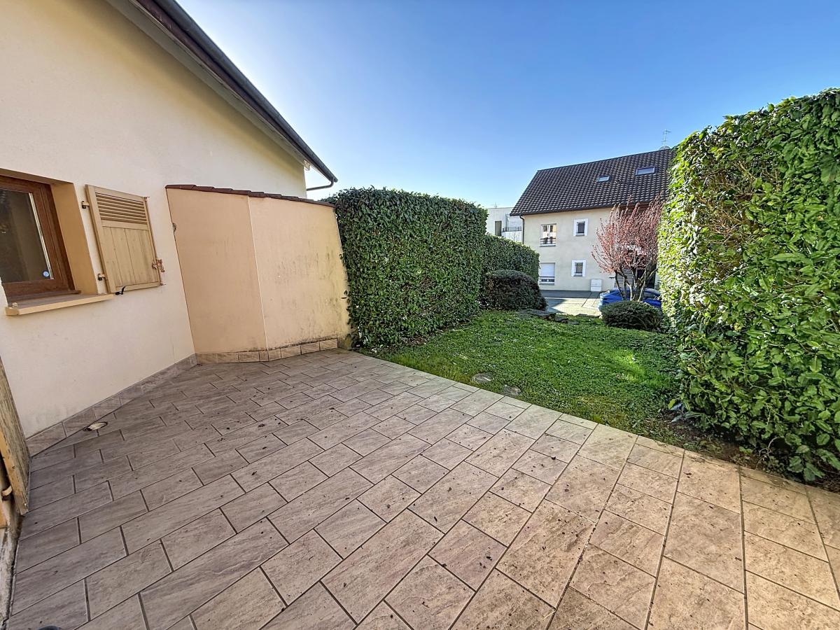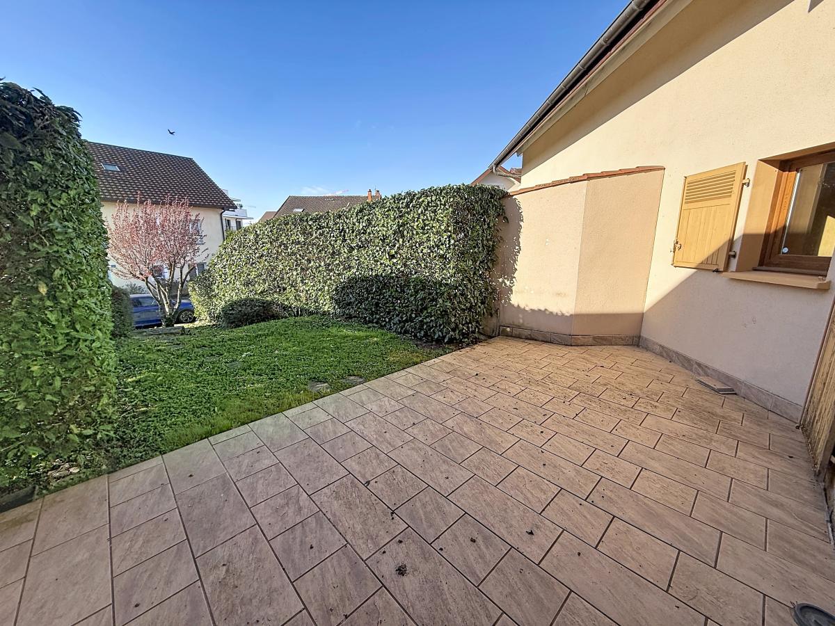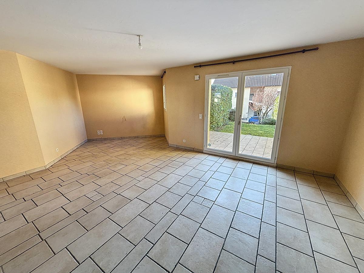 Un vaste séjour / salle à manger de 27 m² donnant accès à une agréable terrasse de 20 m² et à un jardin de 87 m², une cuisine équipée, une chambre, une salle de bains et un WC.